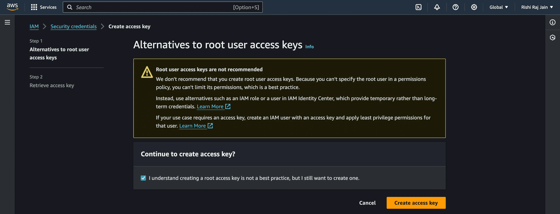 Again, click on Create access key.