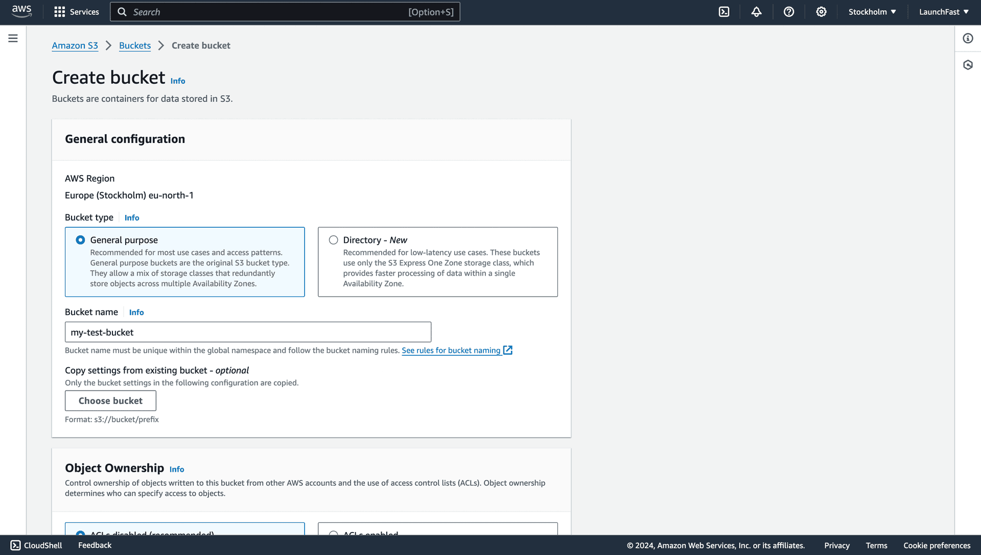 Create an Amazon S3 Bucket